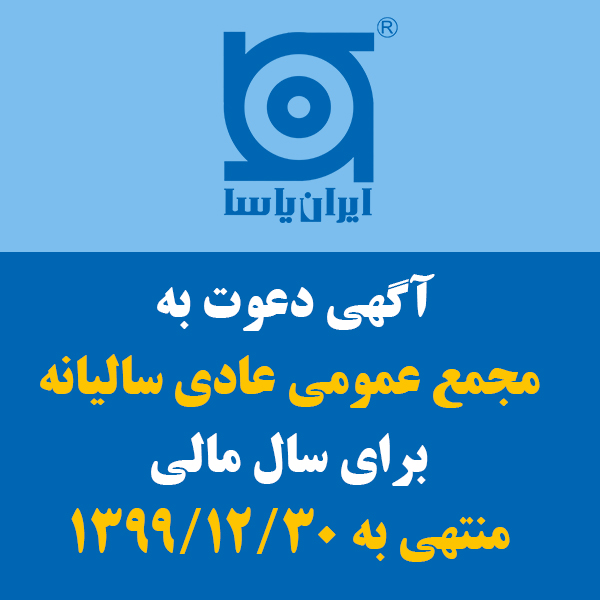 با توجه به ابلاغیه شماره 050/440/ب/98 مورخ 1398/12/26 سازمان بورس و اوراق بهادار در خصوص مصوبه ستاد ملی مبارزه با کرونا که مقرر نموده تا اطلاع ثانوی برگزاری مجامع عمومی شرکت­ها چنانچه با حضور حداکثر 15 سهامدار حقیقی یا حقوقی برگزار شود امکان حضور مجازی سهامداران از طریق مراجعه همزمان به آدرس اینترنتی http//:iranyasa.ir   فراهم شده است.