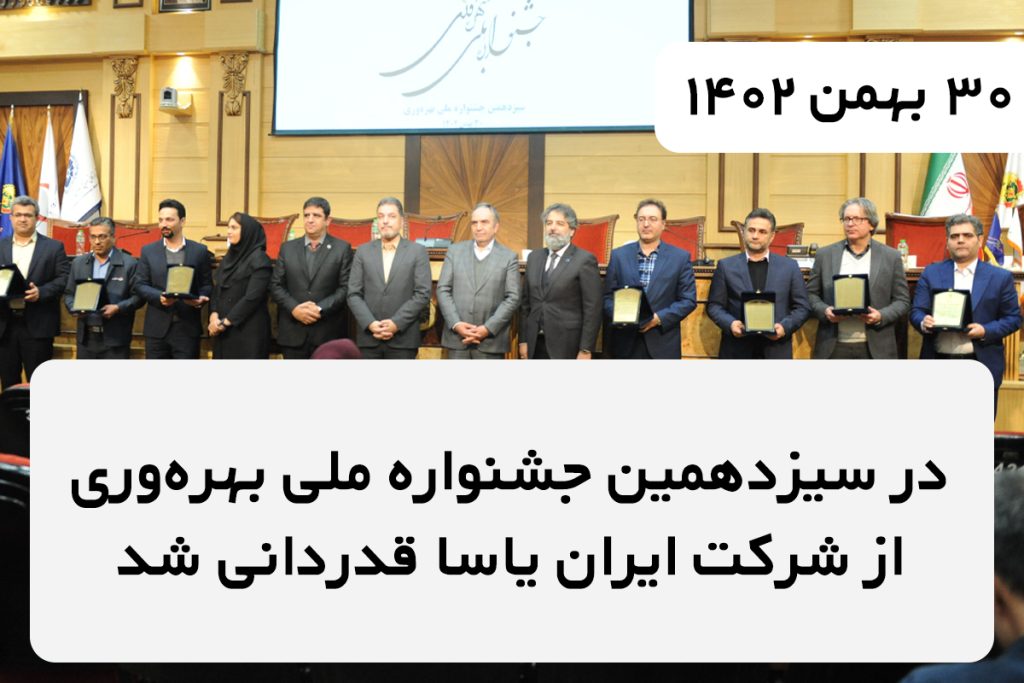 در سیزدهمین جشنواره ملی بهره وری از شرکت ایران یاسا قدردانی شد